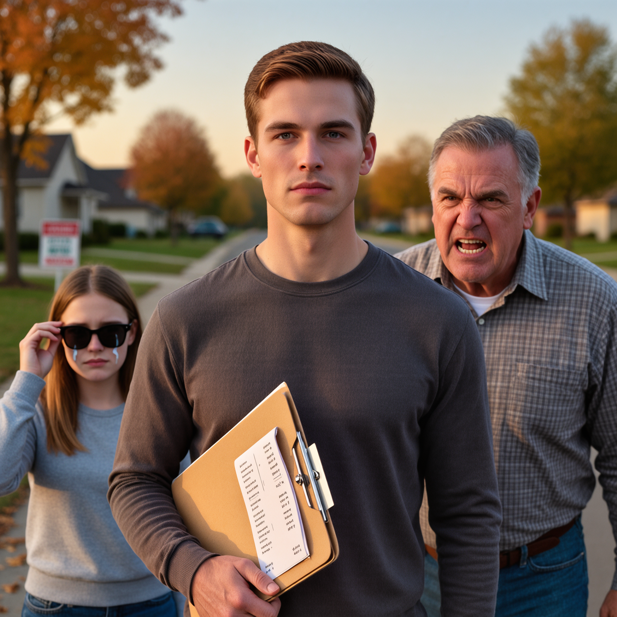 By noon, a few cars had started to arrive. A couple of serious bidters, some curious neighbors, and then finally my family. They pulled up in dad’s old Chevy, all packed in like some twisted family road trip. Mia got out first. Her face was blotchy, red rimmed eyes behind oversized sunglasses. Adam followed, scowlling, clearly here just to play enforcer. And then my parents. Mom looked worn down, 10 years older than the last time I’d seen her. Dad. Well, he still walked like he thought he owned the ground. He spotted me instantly. Eric, he called out, voice low and bristling. We need to talk now.